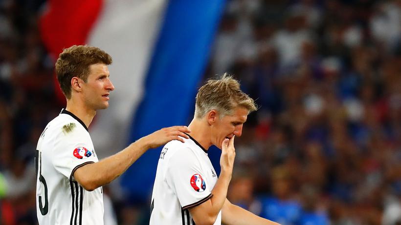 Deutsche Nationalmannschaft: Enttuschte Verlierer: Bastian Schweinsteiger und Thomas Mller im Stadion in Marseille