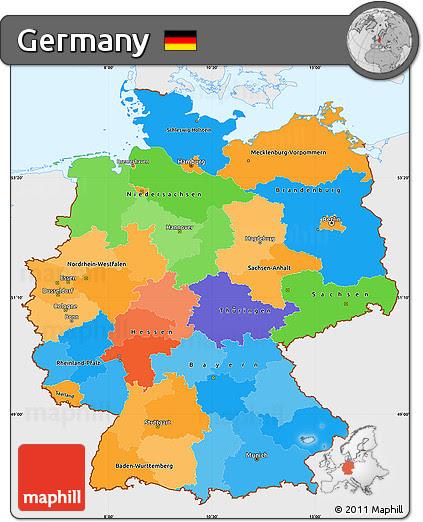 Colorful Germany political map with clearly labeled, separated layers. Vector illustration.