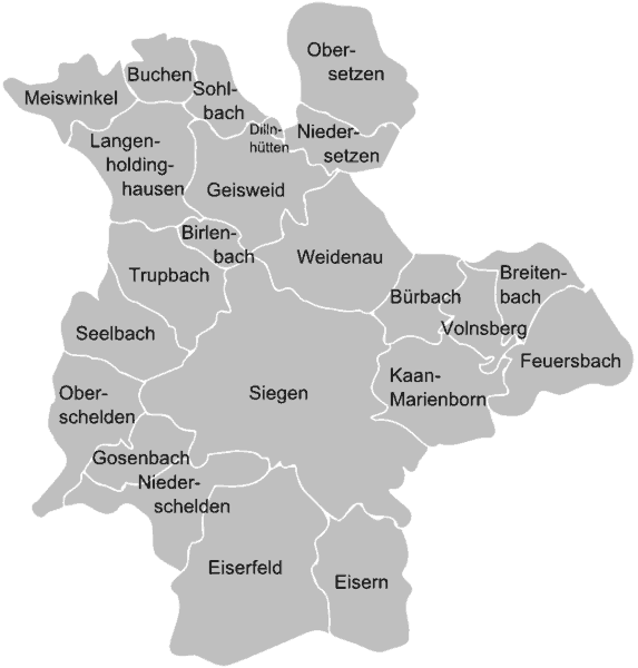 Siegen Karte der Stadtteile